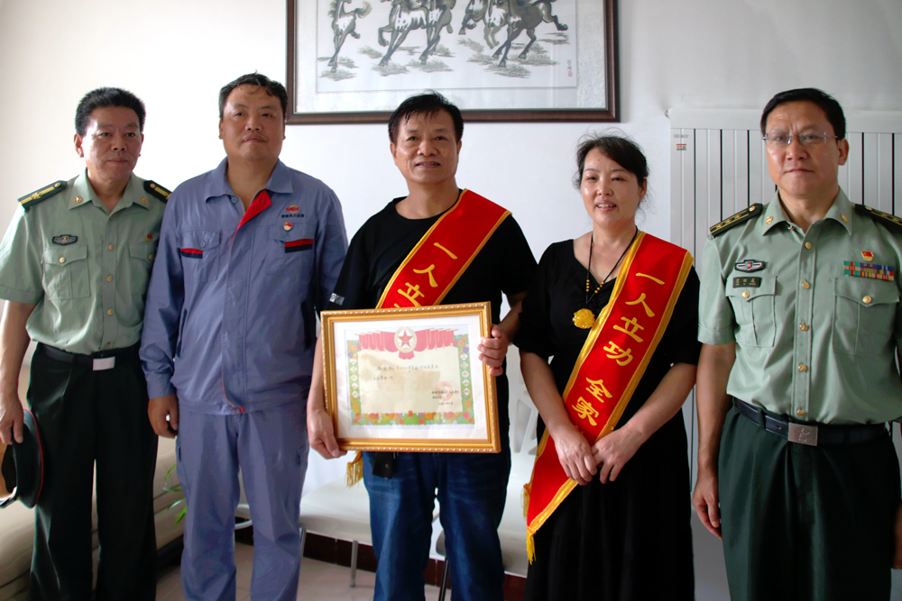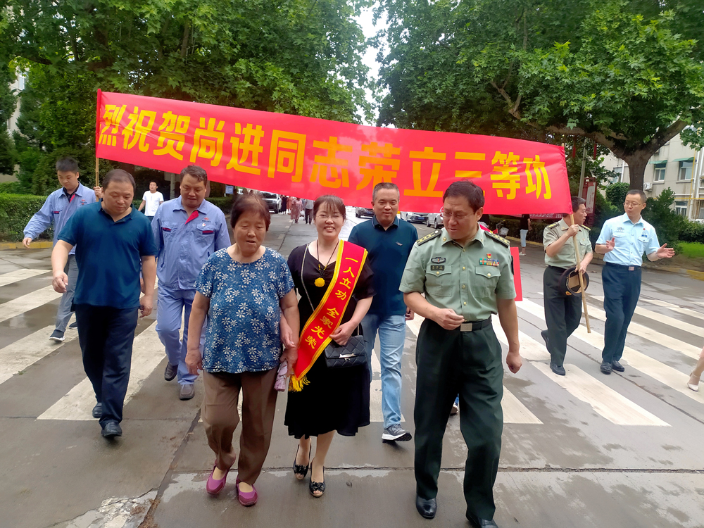 7月23日,咸陽市渭城區(qū)武裝部一行送來喜報,正陽鎮(zhèn)政府、公司渭河項目部等相關(guān)單位人員為尚照熙一家送去關(guān)懷與祝福,共同見證了這激動人心的一刻。當(dāng)天上午,咸陽市渭城區(qū)武裝部一行上門為尚照熙夫婦戴上“一人立功,全家光榮”的鮮紅綬帶,并送上喜報和慰問金。