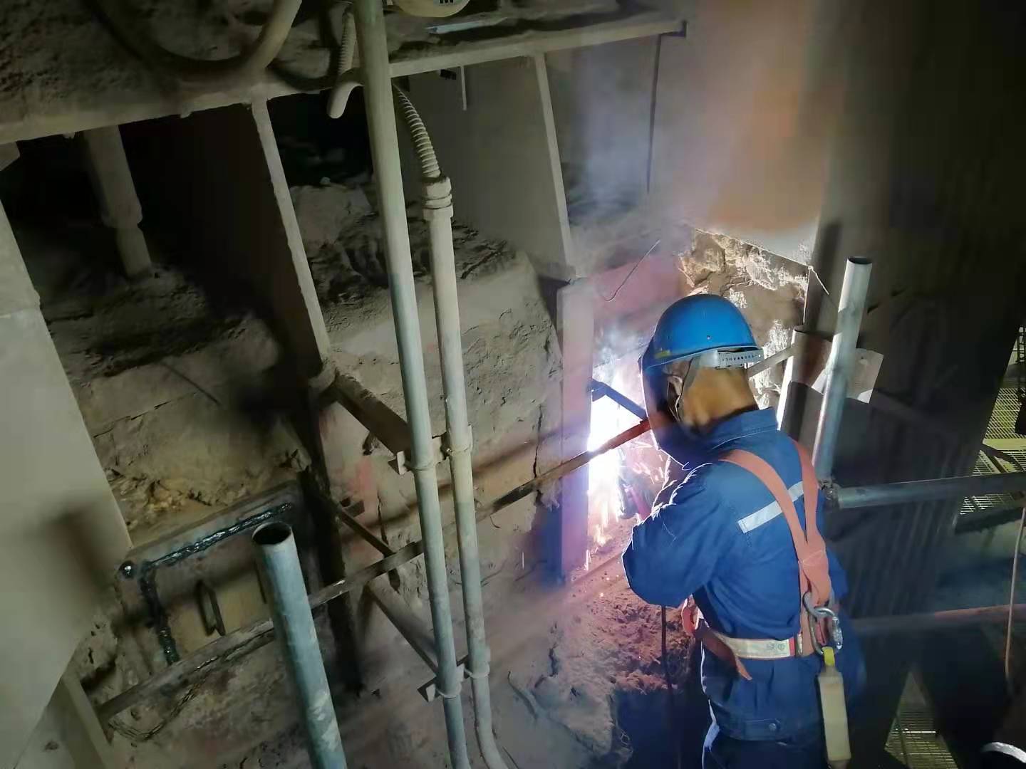 供熱抽汽快關調節閥的回裝關系著冬季向大用戶供熱問題,汽化水班高度重視,搶抓工期,加班加點完成任務。鍋爐班對長期吹掃減薄的10臺給煤機出口播煤風管道進行了更換,處理了空預器非停機不能處理的漏點,對冷渣器內脫落的導流板并行了補焊及檢查,同時還伴隨著2A鏈斗輸送機搶修及諸多作業多線進行,本次臨停消缺計劃工期至8月19日結束。