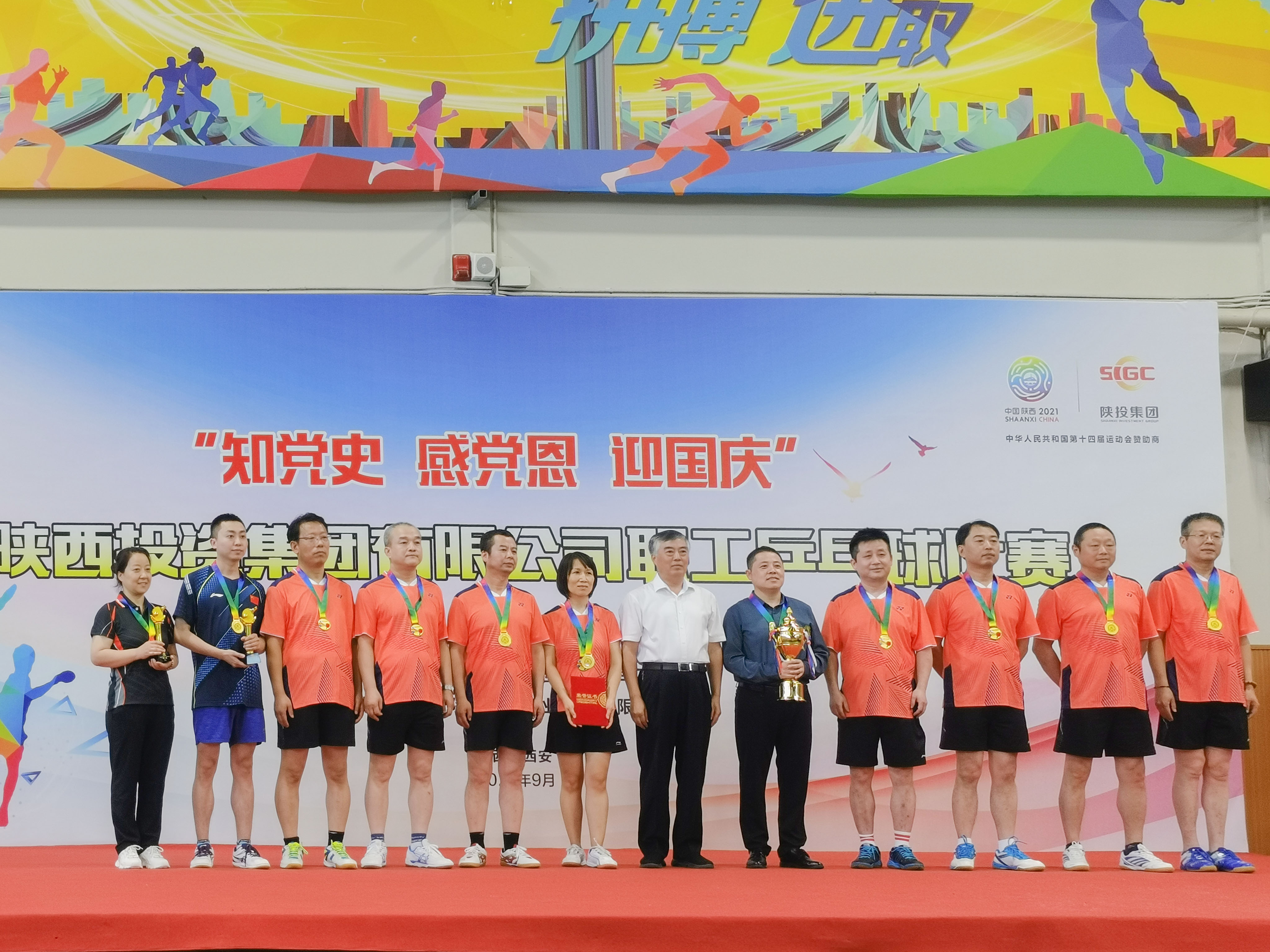 9月30日,集團公司工會舉辦的“知黨史、感黨恩、迎國慶”職工乒乓球比賽在金信實業職工運動中心落下帷幕。由工會主席韓宏友擔任領隊的公司乒乓球隊經過頑強拼搏,一路所向披靡殺進決賽,從集團系統26支隊伍中脫穎而出,取得混合團體冠軍!