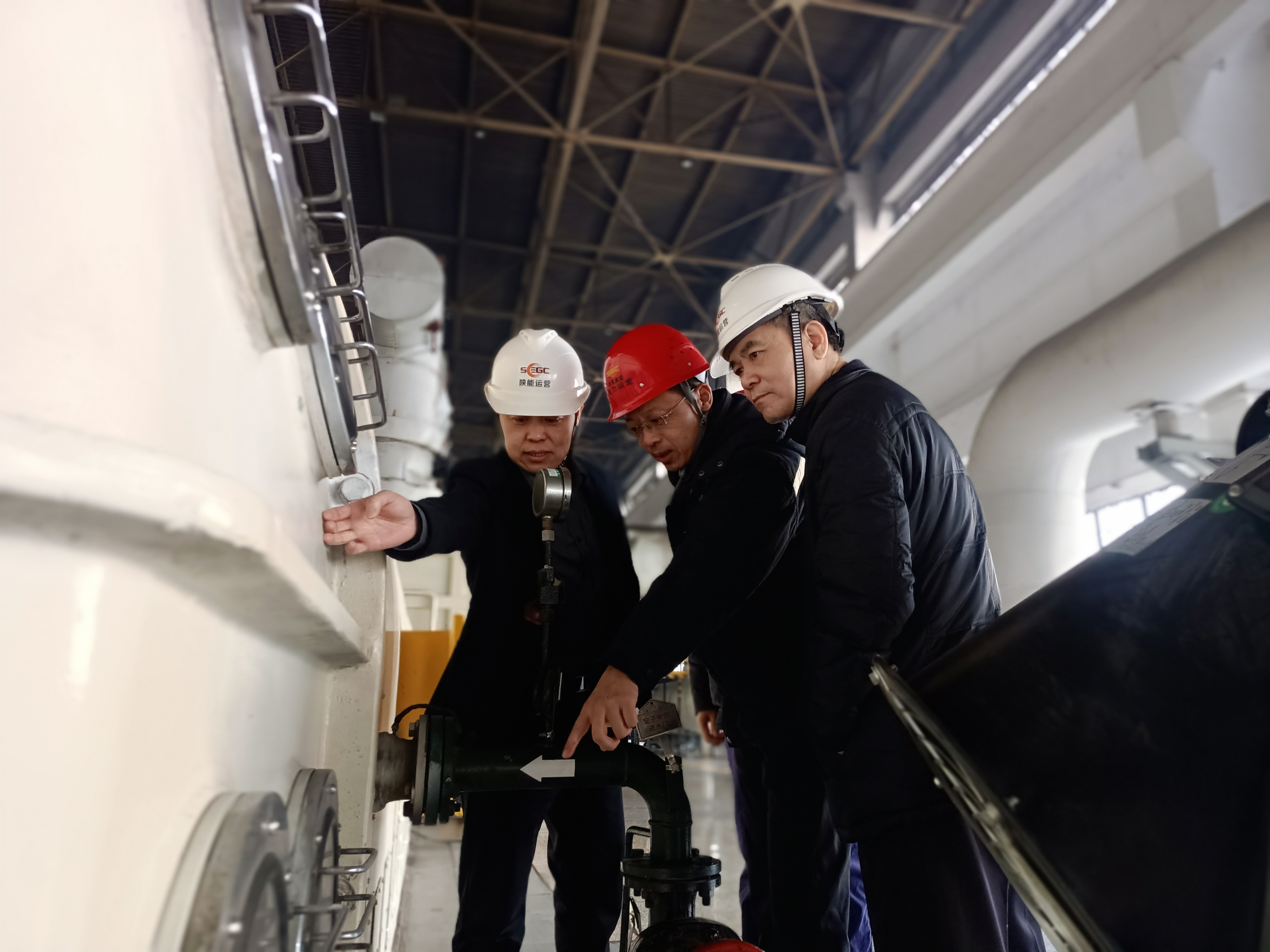 張小鋒一行走進渭河項目部退役軍人突擊隊活動室、安全培訓室等地,詳細了解渭河項目部2021年各項工作的完成情況,詢問了設備運行參數,并要求節日期間安全舉措落實到位,叮囑堅守崗位的員工注意作業安全。