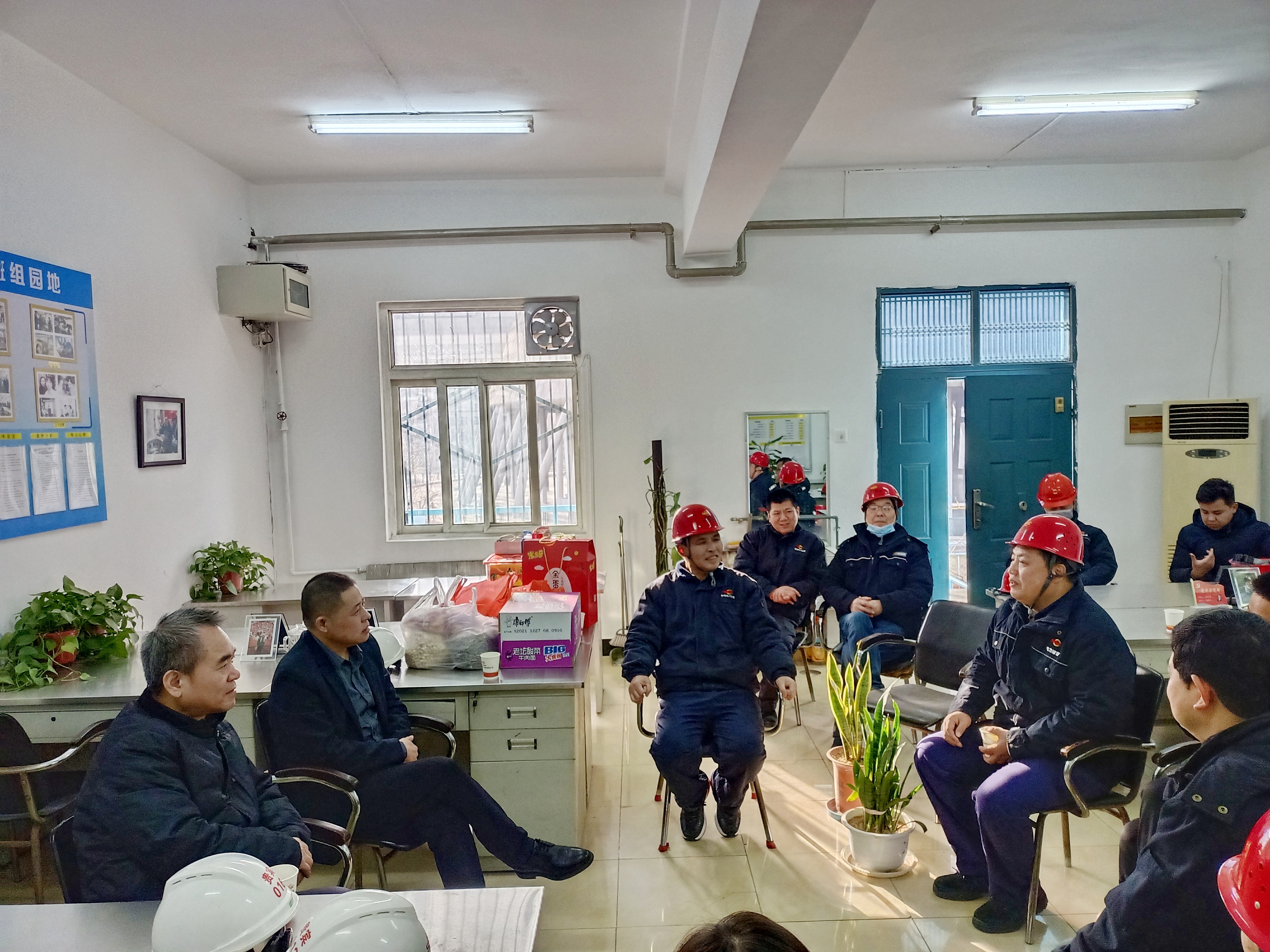 在熱控三班、汽機主機班班組,張小鋒、武紅幸與值守干部職工進行了座談交流,希望大家在2022年再接再厲,為公司高質量發展貢獻新的更大力量。同時,要求項目部時刻緊繃安全生產這根弦,做好節日期間安全生產和后勤保障工作,讓大家感受溫暖、安心工作。