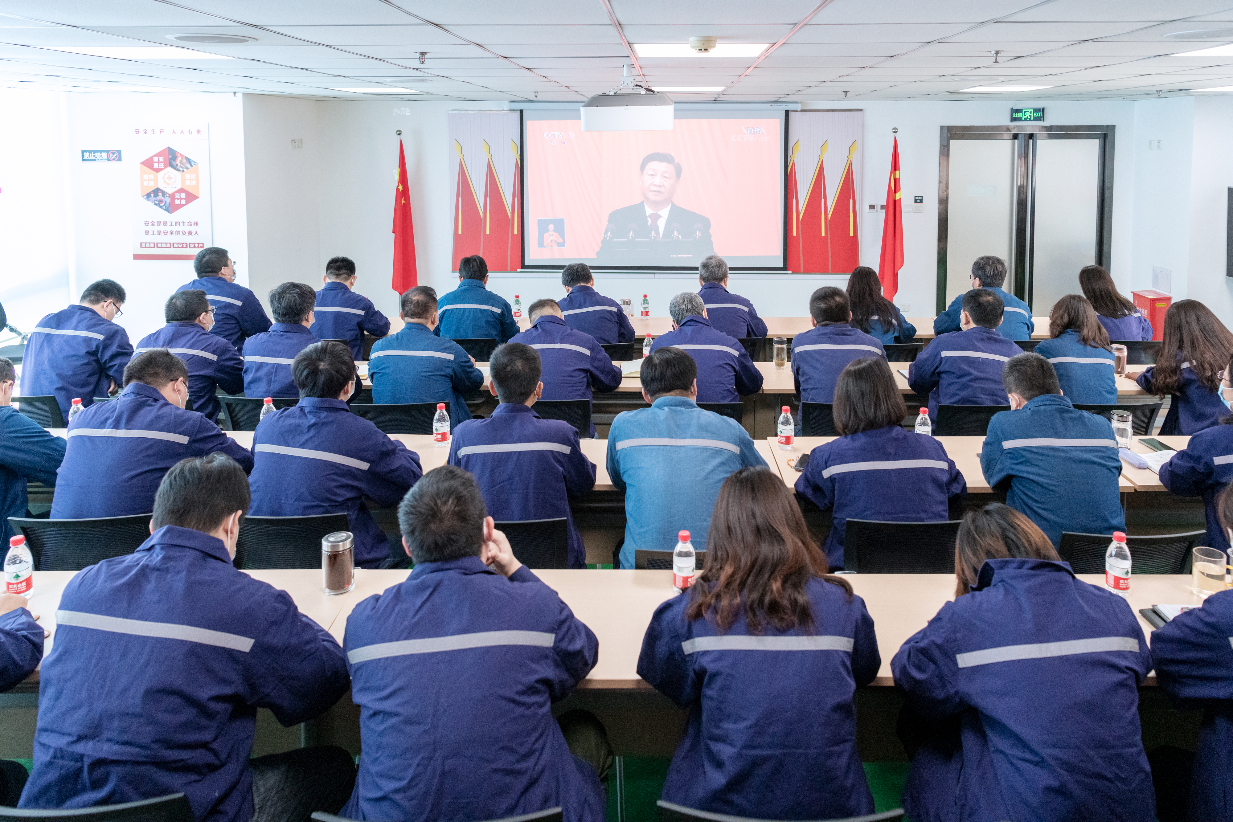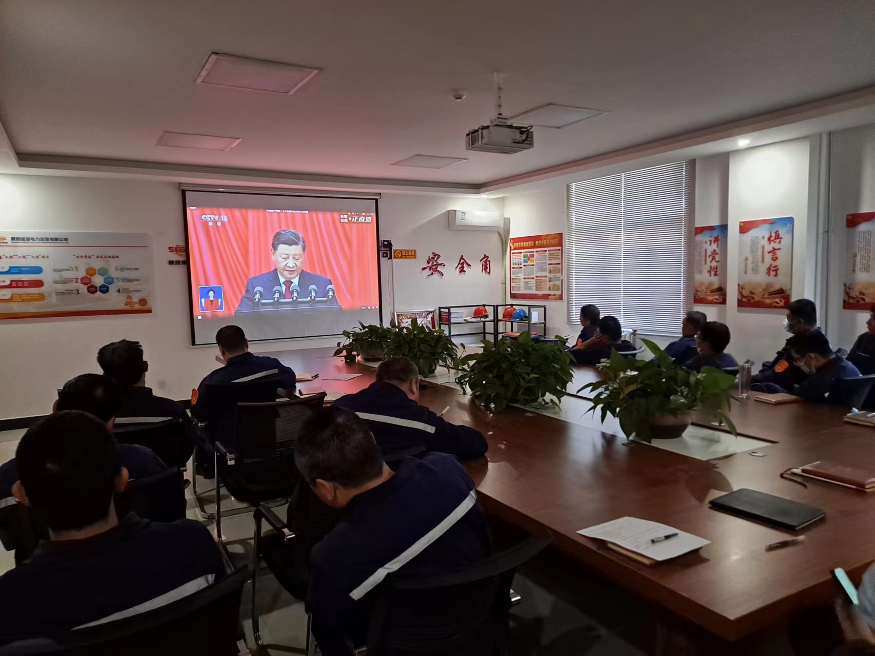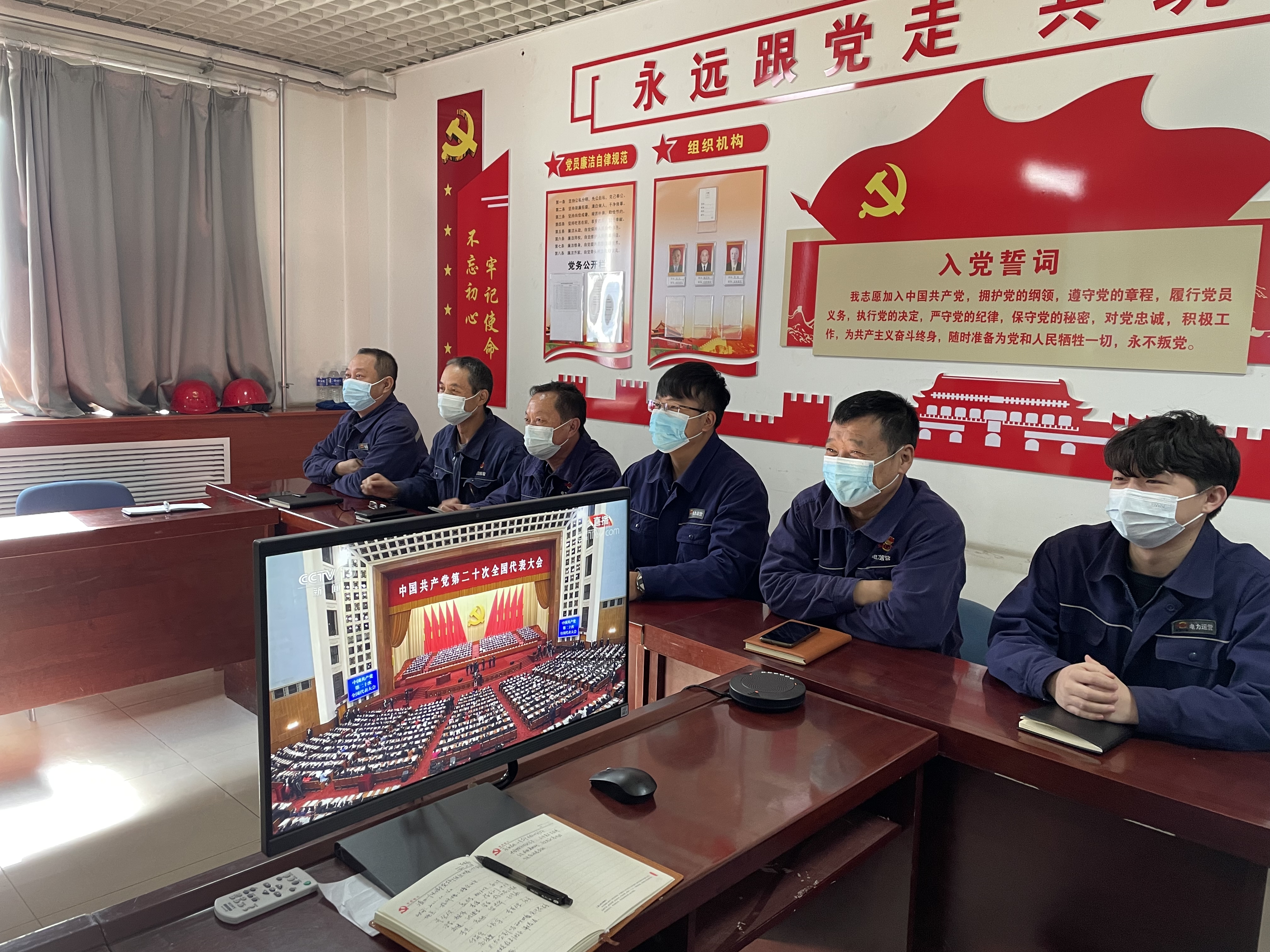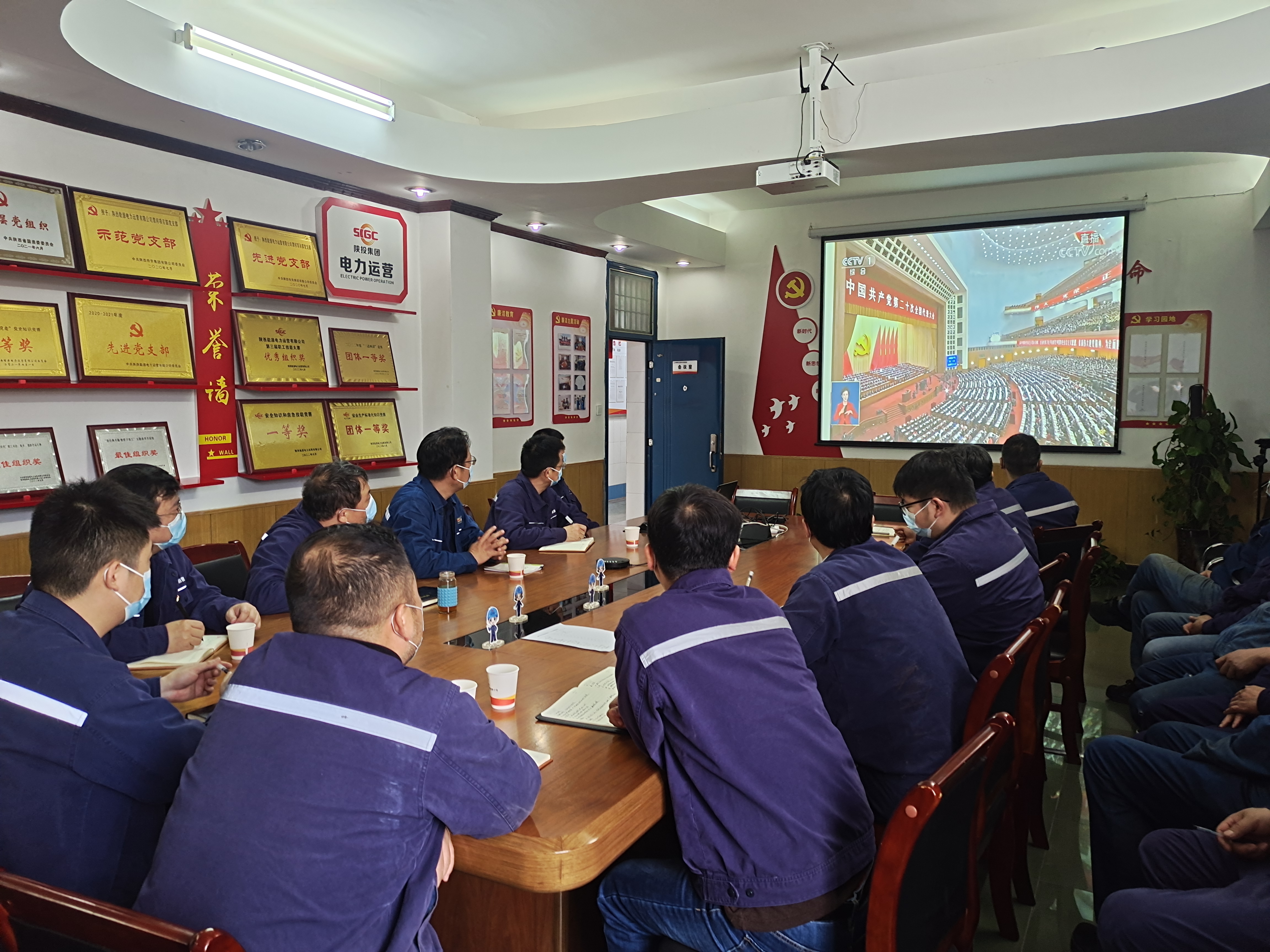 公司領導班子、君創科技、各項目部、各風電場站、機關各部室黨員、團員青年、職工代表共260余人收看了開幕會實況直播,認真聆聽了習近平同志代表第十九屆中央委員會所作的題為《高舉中國特色社會主義偉大旗幟,全面貫徹新時代中國特色社會主義思想,弘揚偉大建黨精神,自信自強、守正創新,踔厲奮發、勇毅前行,為全面建設社會主義現代化國家、全面推進中華民族偉大復興而團結奮斗》的報告。