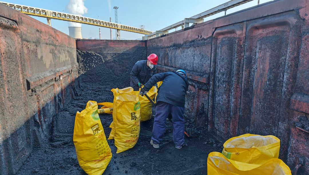 搶卸現場,鐵锨、洋鎬和凍煤的撞擊的“交響樂”此起彼伏,“注意安全!”的提醒聲不絕于耳。零下10多度的室外,寒風一陣緊過一陣,隊員互相配合,干得熱火朝天,一刻不停地進行著清理工作……大量凍煤從車廂壁、車廂角、車廂底清理下來,一點不漏地落入卸煤溝。短短四天內,工作人員卸煤3000多袋近120噸,圓滿完成凍煤接卸“攻堅戰”,讓每一粒珍貴的鍋爐“口糧”顆粒歸倉。