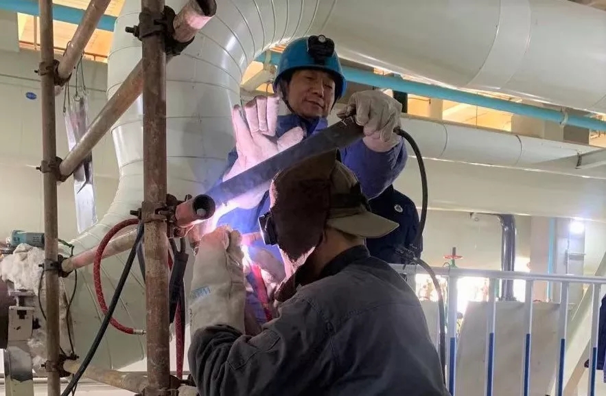 到達當天,全部人員馬不停蹄,即刻投入到緊張的檢修工作中。此次#1號機組的臨修,任務重、項目繁雜,除氧器取樣門焊口、爐送風機供氣母節漏點焊補、石膏旋流滲流管焊接……每一項任務都是難啃的“硬骨頭”,每一項工作都需要和多個專業協同進行,但大家沒有一絲懈怠,一直全身心進行工作,即使春節期間也沒有停工,每一名工作人員始終兢兢業業,從預熱、焊接、到熱處理、射線檢測,每一個環節都做得一絲不茍、每一道工序都力求做到精益求精。